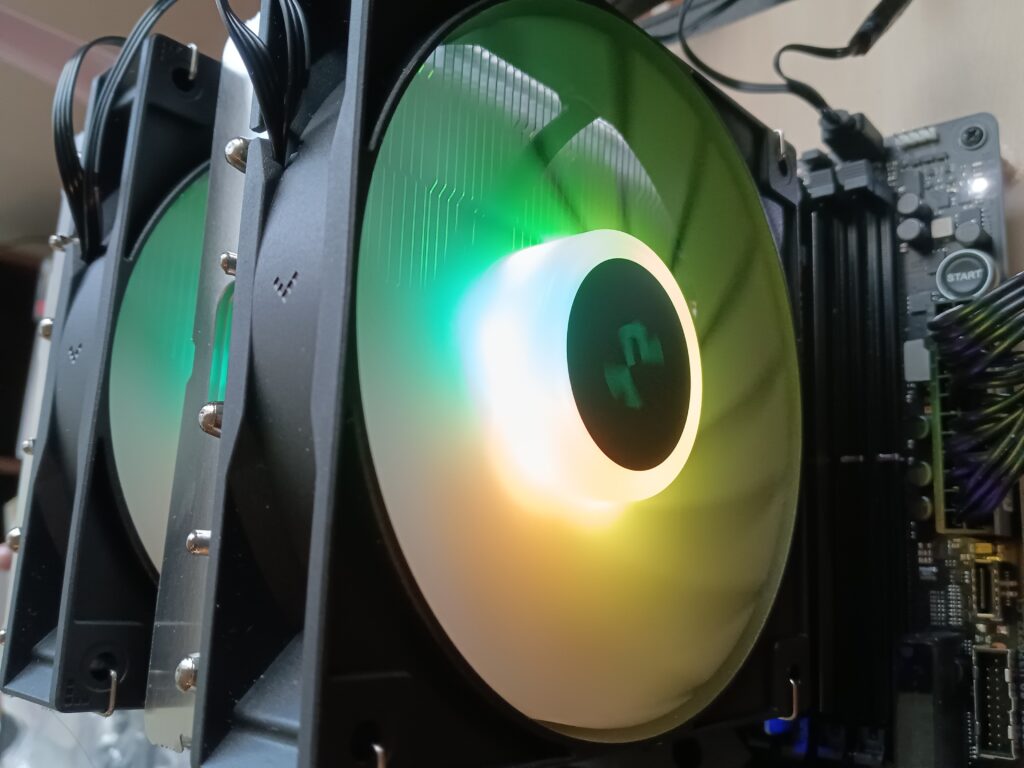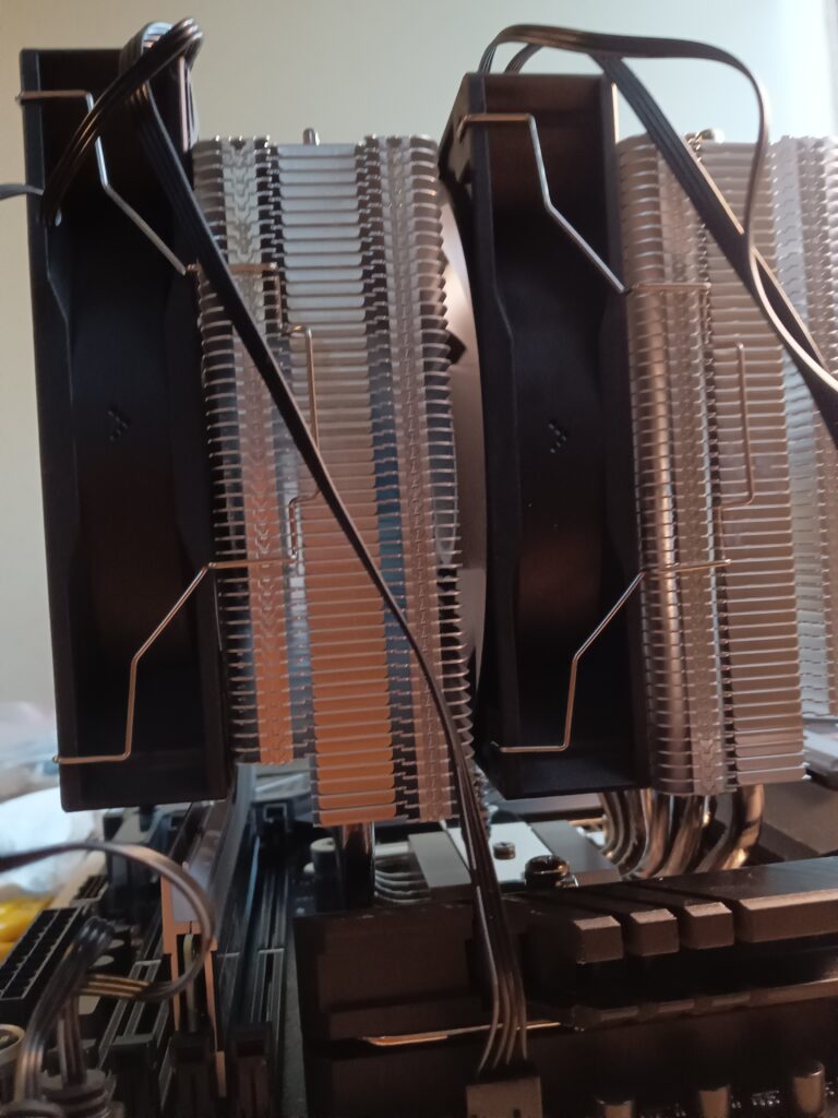 第14世代シリーズは「爆熱(処理速度は速いが発熱量も多い)」と聞いたので、CPU空冷ファンもヒートシンク2面付きのものにした。